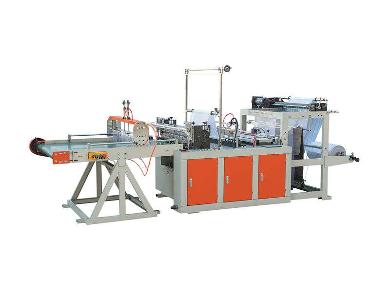 而熱封冷切制袋機,是先熱封一刀,然后用冷刀切斷,切后的邊是開口的.它除了能用于背心袋生產(chǎn)外,制袋機把雙線封刀換成單線封刀,也能用于平口袋的生產(chǎn).因為它的切邊是開口式的.